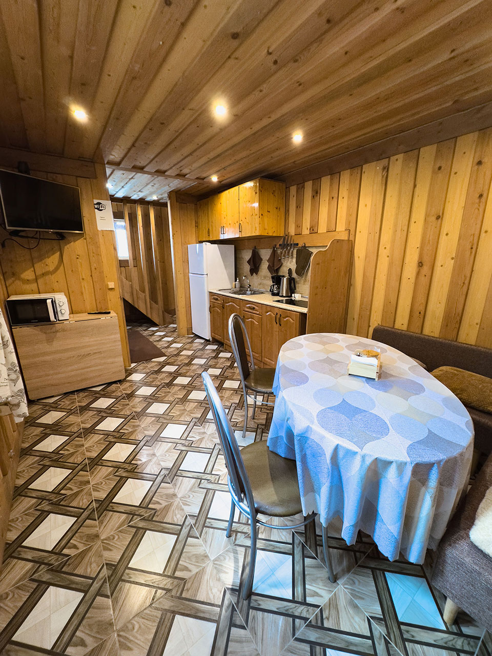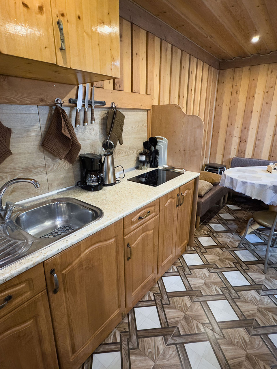 На первом этаже комната-студия с оборудованной кухонной зоной.
