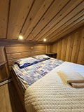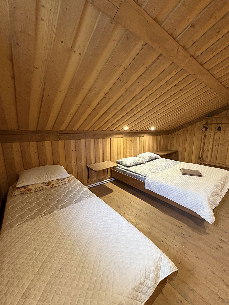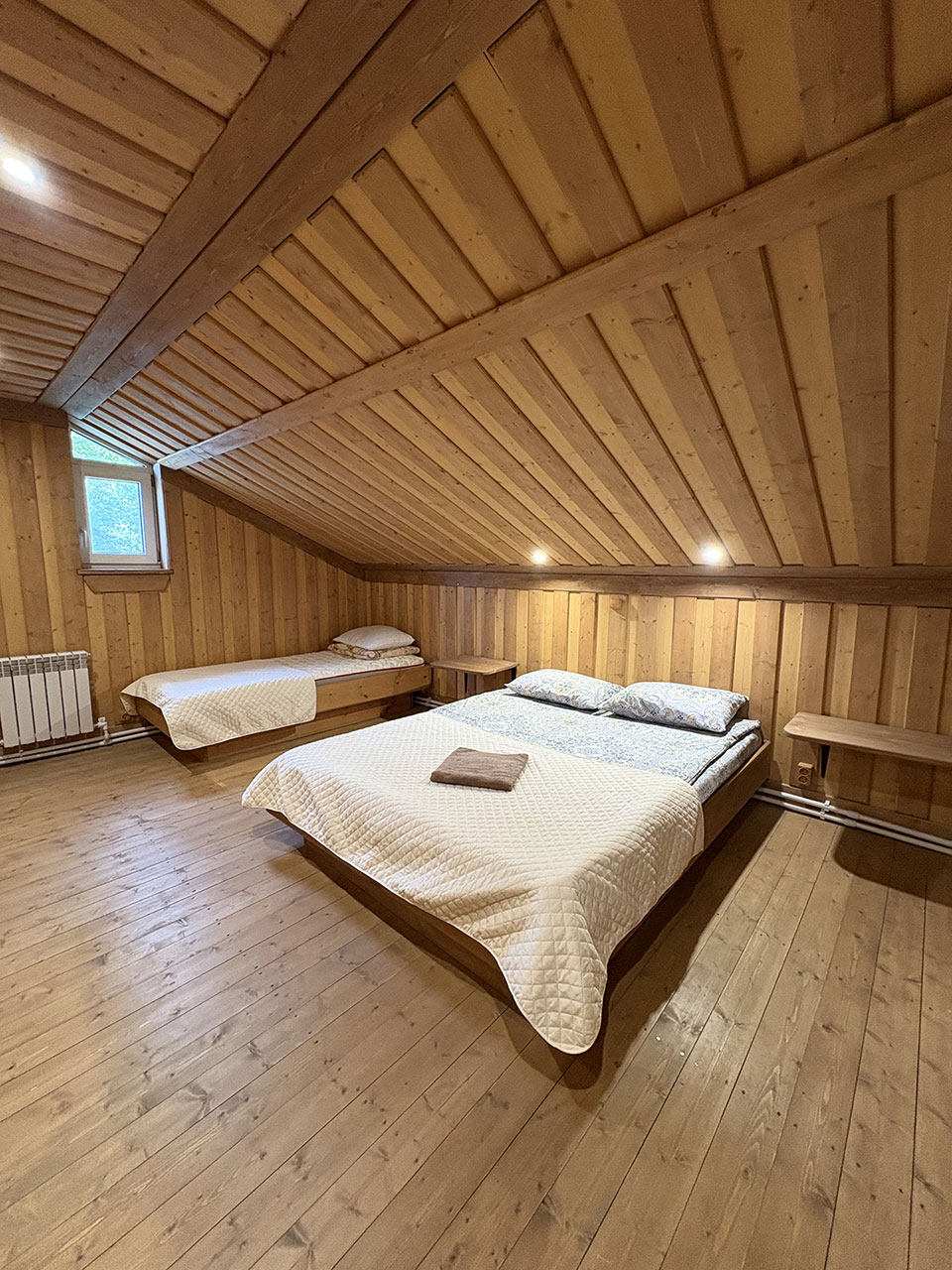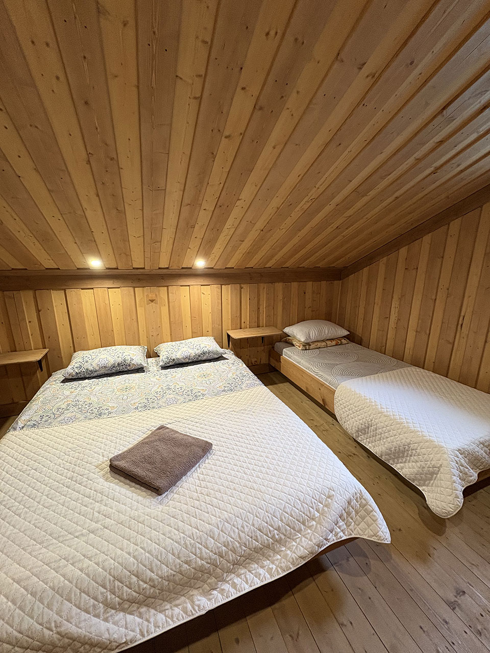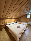 На втором этаже 3 спальни. В первой спальне 2-х местная кровать, во второй 2-х и односпальная кровати, в третьей 2-х и односпальная кровати.