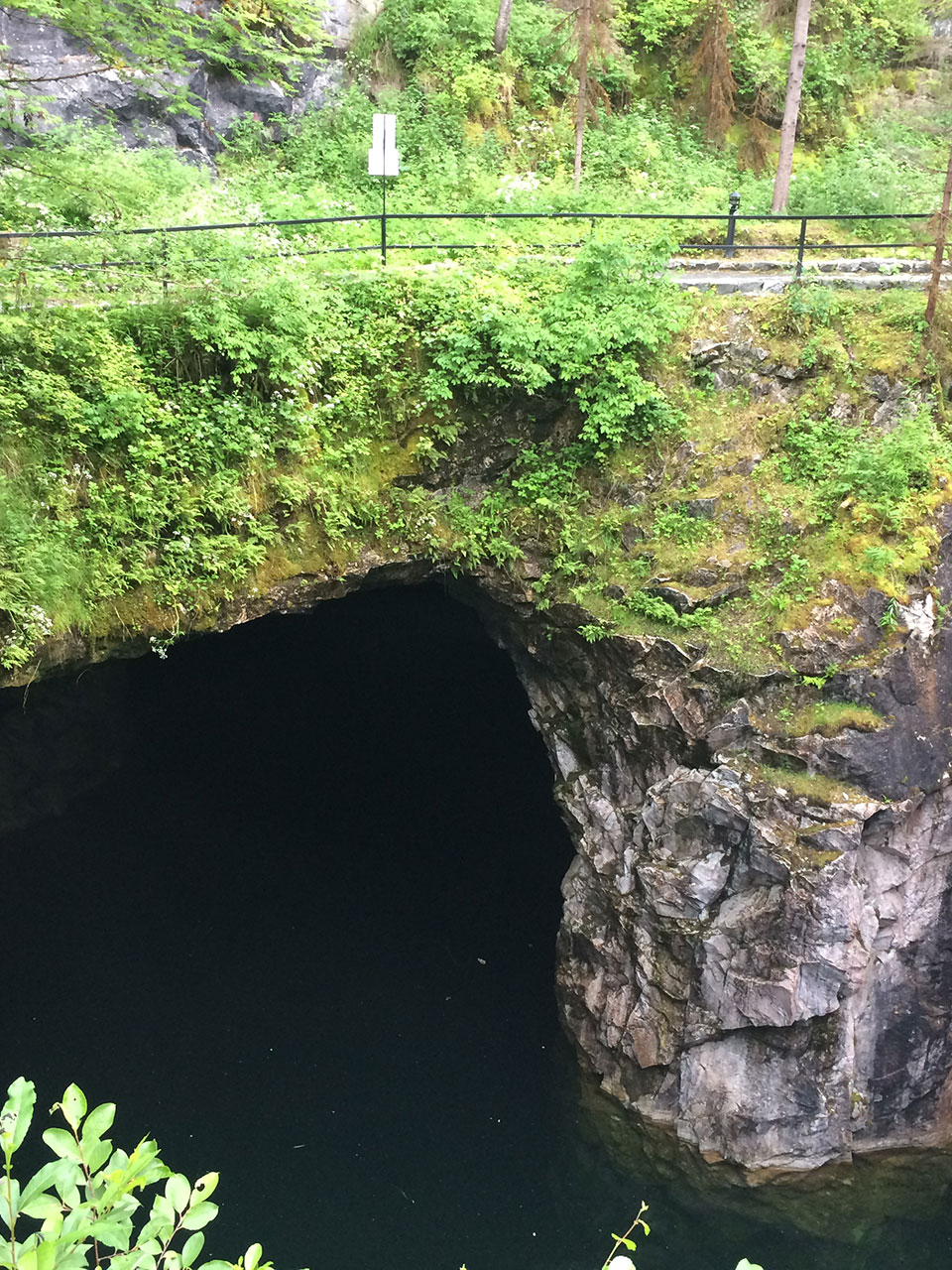 Путешествие в подземелье: Экскурсия "Подземная Рускеала": (Требуется предварительная запись/доп. оплата) Одевайтесь теплее (+8°C даже летом!) и с фонариком спуститесь в систему старых штолен и пещер. Узнайте о тяжелом труде горняков прошлого и увидьте подземные озера в свете прожекторов.